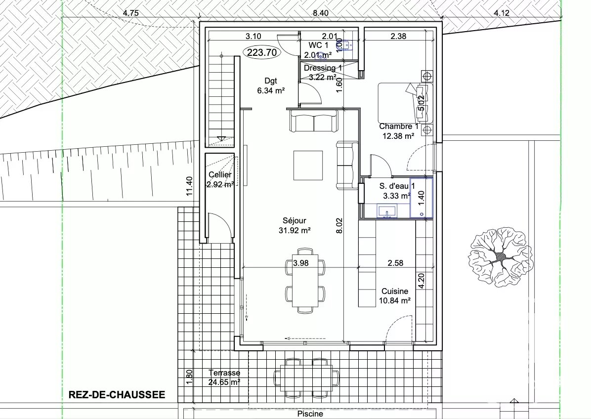 This architect-designed villa with its contemporary, refined aesthetic has been designed to offer you a spacious and bright living space. Large bay windows open up the spaces to the outside, allowing natural light to flood the interiors and providing direct, level access to the swimming pool.