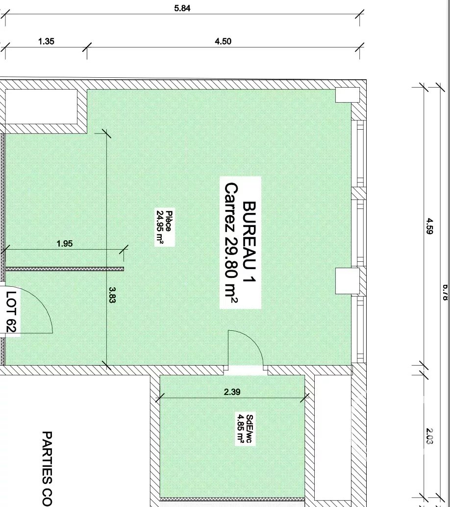 Una oficina situada en un edificio con zonas comunes renovadas y fachada restaurada en 2024, esta oficina de 29,80 m² es perfecta para una actividad profesional.