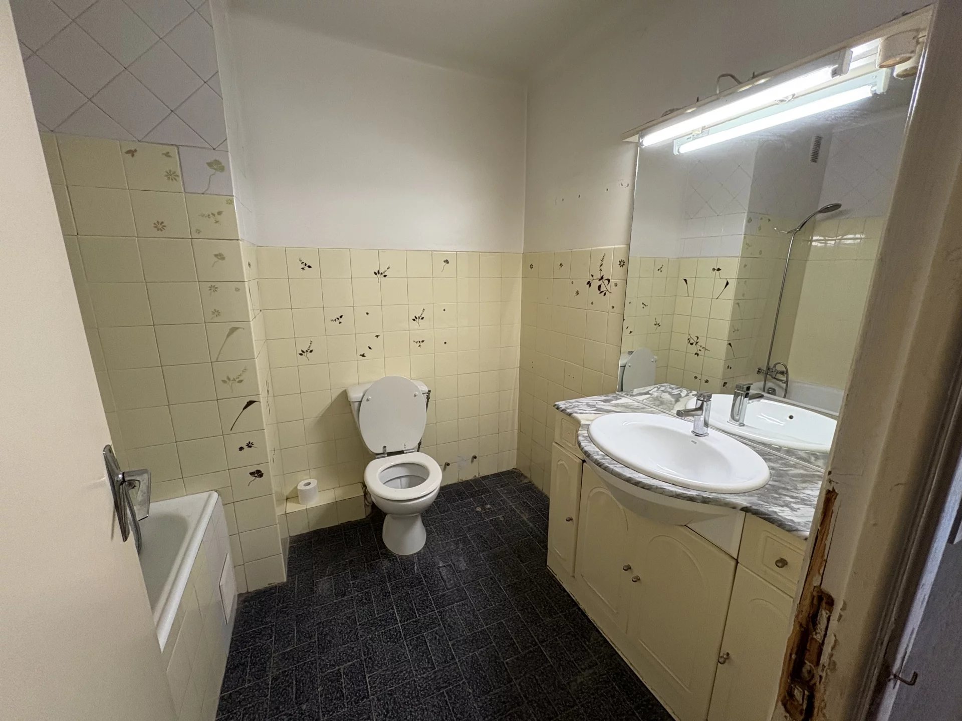 Venez découvrir cet appartement a rénover, composé, d'un beau Hall d'entrée, desservant, un grand séjour, une cuisine indépendante, une chambre, le tout donnant sur un balcon filant sur toute la longueur de l'appartement, et d'une salle de bain avec toilette.....Ce bien est vendu avec une cave et un garage....Fort potentiel....Tout est collectif 2396€ de charge annuelle, 199€ par mois, comprenant l'eau chaude, le chauffage et la consommation d'eau froide.