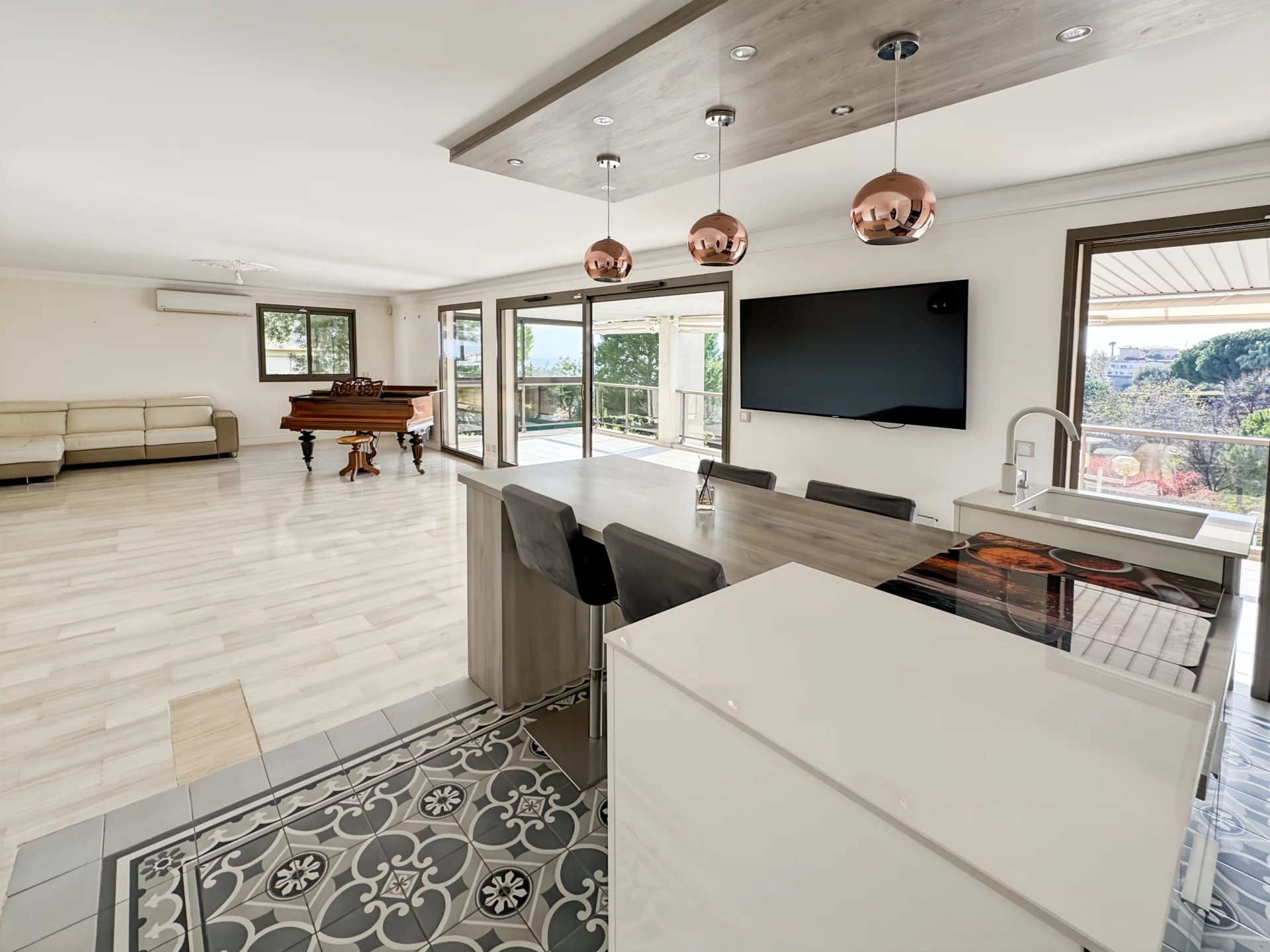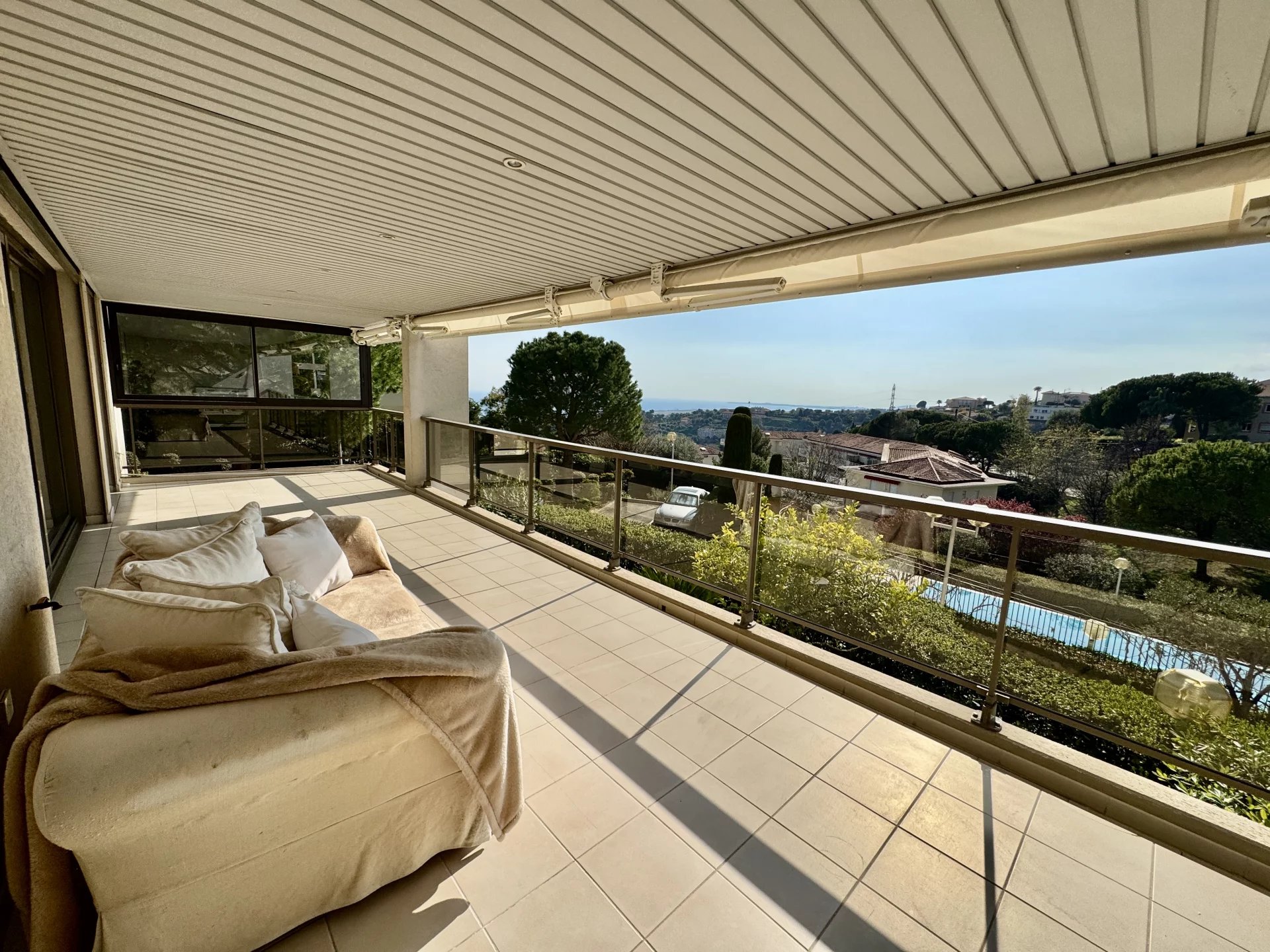 Cet appartement vous ravira par sa luminosité, sa vue merveilleuse sur la mer, ainsi que par la qualité de ses prestations ( climatisation, alarmes, copropriété de grande qualité)