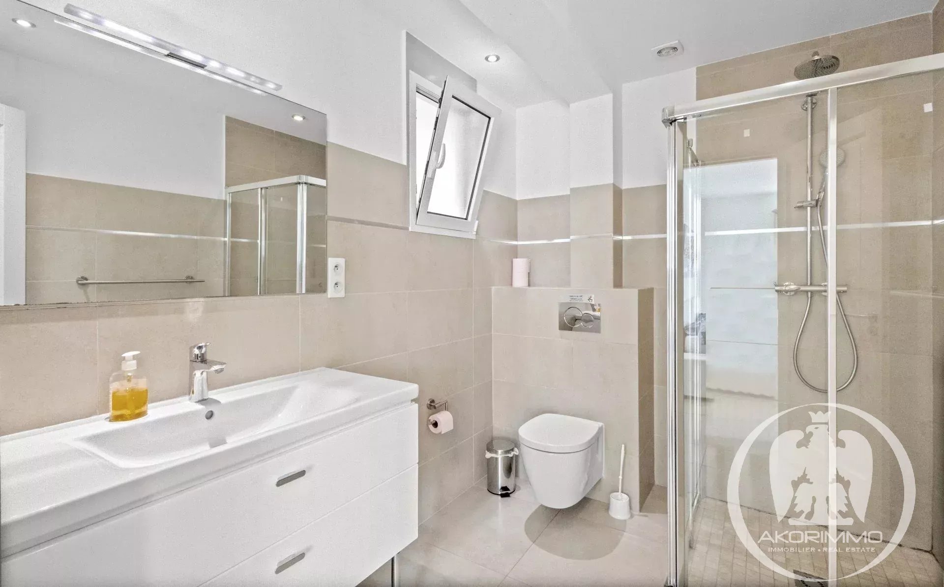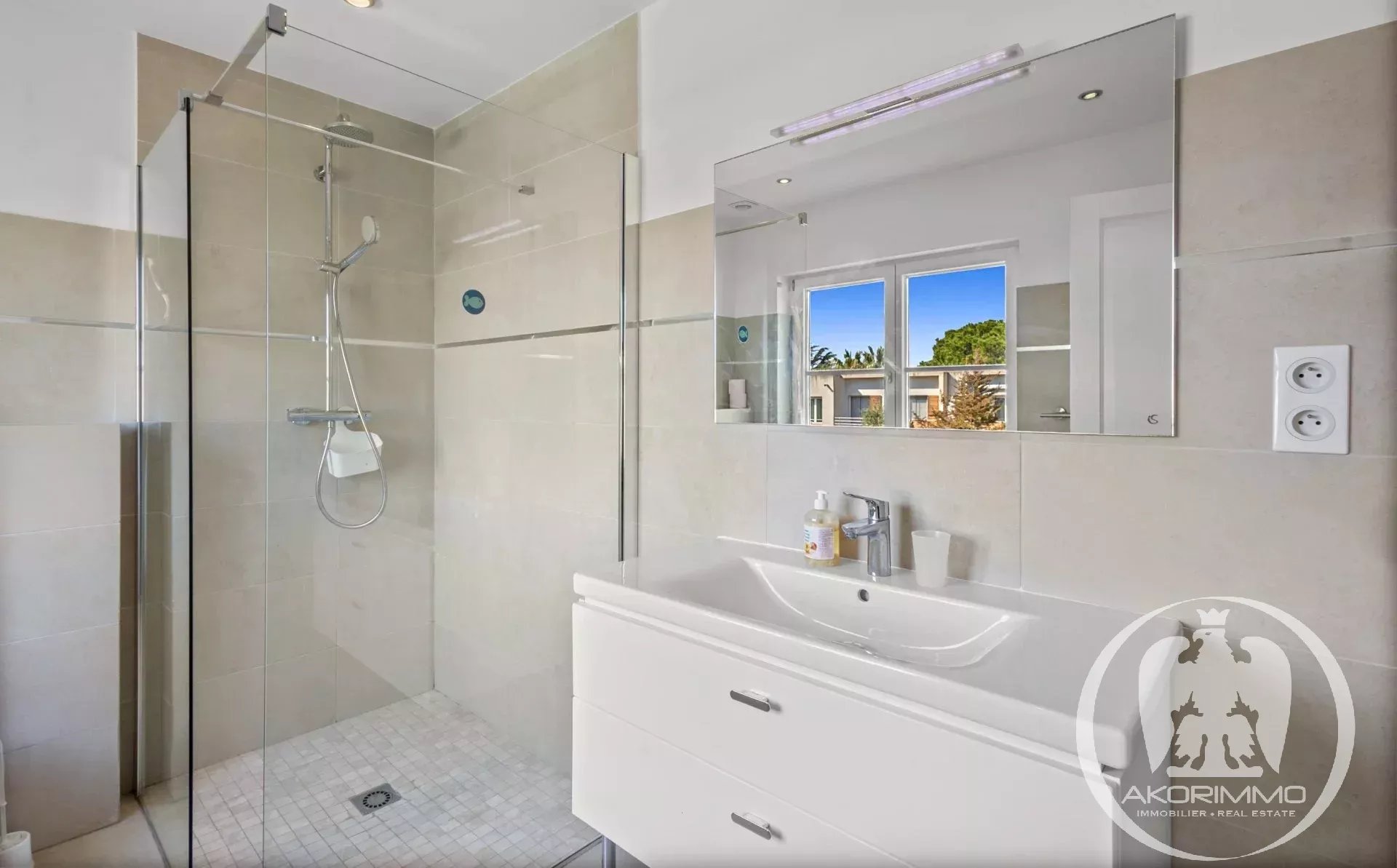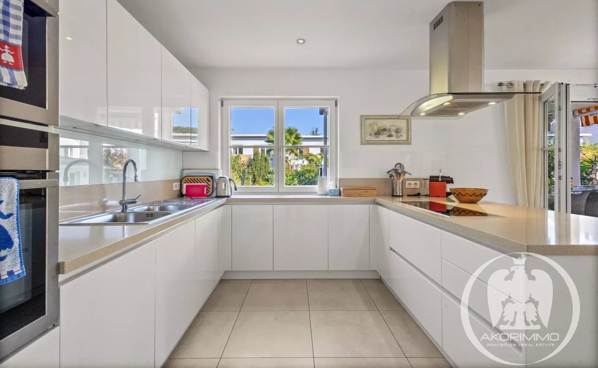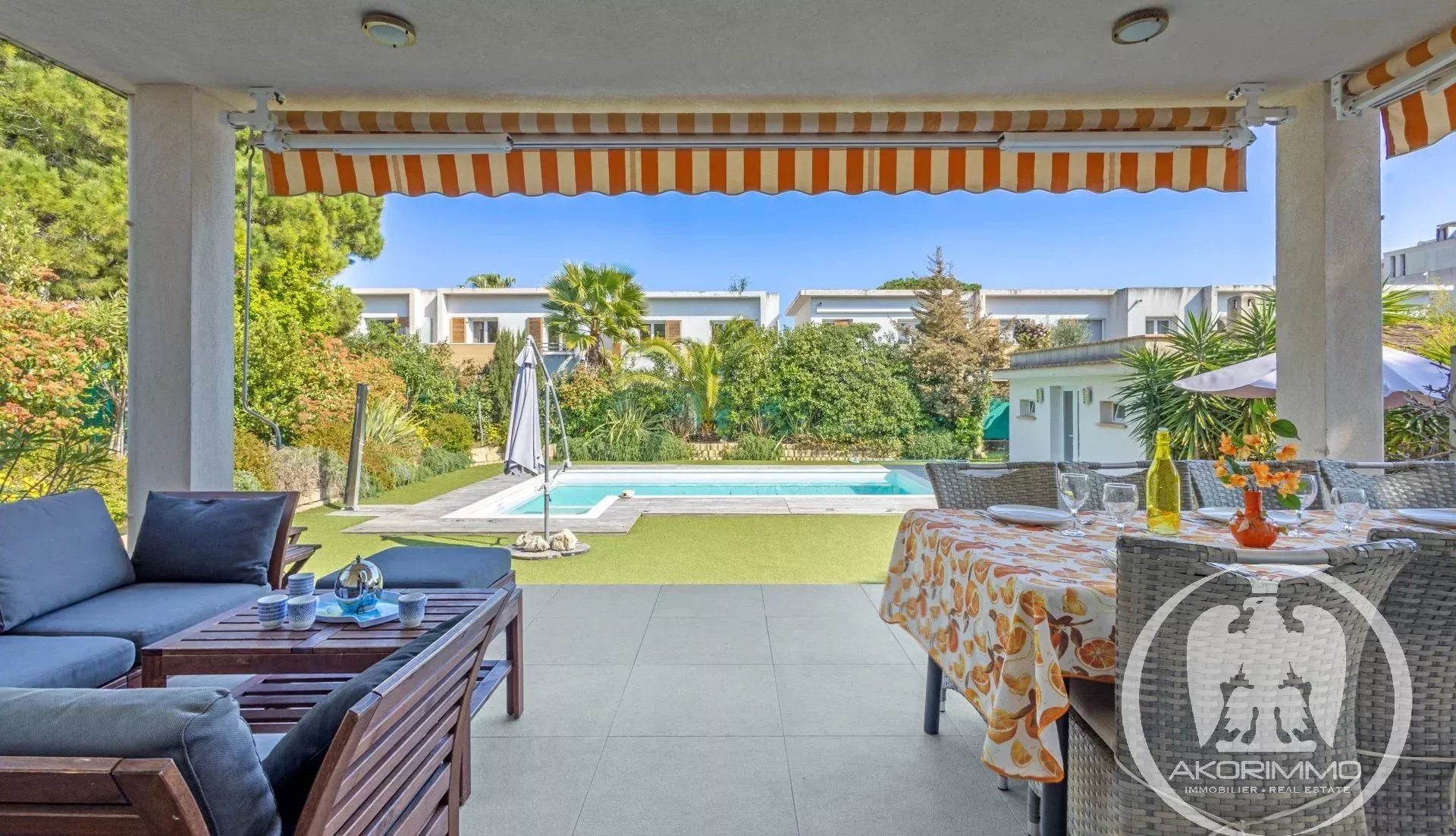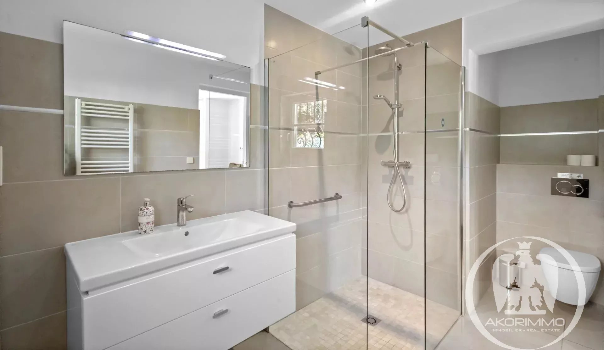 A soli 5 minuti a piedi dalle spiagge sabbiose di Juan-les-Pins, questa villa gode di una tripla esposizione che garantisce una bellissima luce naturale tutto il giorno. L’area living di circa 60 m², con soggiorno, sala da pranzo e cucina a vista, comunica direttamente con l’esterno, offrendo una sensazione di spazio fluido e piacevole.